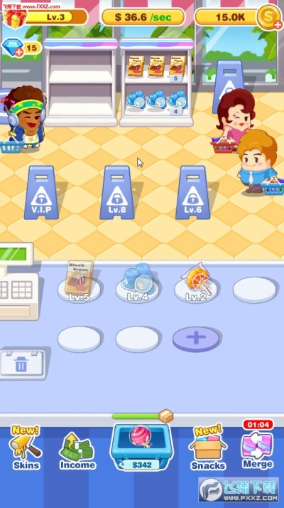 升级你的店铺,解锁更多的货架,打造连锁零食帝国