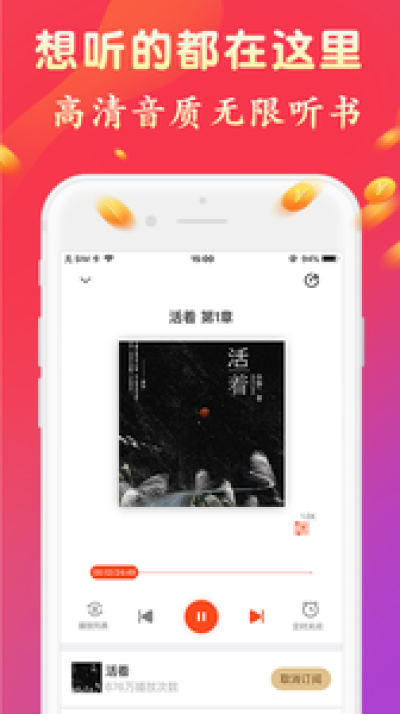 ★ 支持后台播放,自动跳转下一集,解放你的双眼与双手,真正的闭上眼睛听世界!