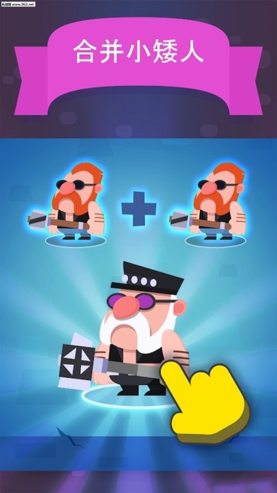 赶快拖动相同的矮人,合并他们,解锁新的形象 - 篮球运动员、金刚狼、福尔摩斯和其他形象。创建您自己的不可思议的角色方队,准备好获得黄金吧。