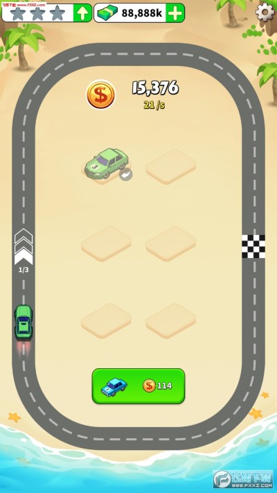 # 通过合併将载具升级,并将载具放置到赛道上获取现金奖励