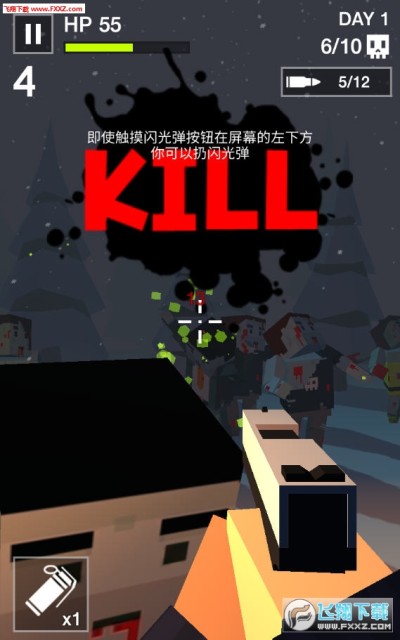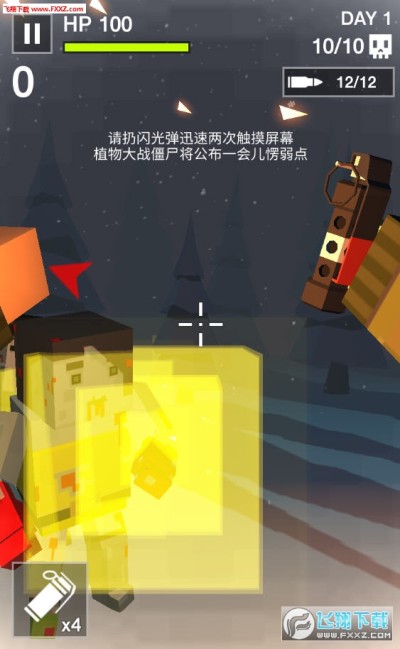 1、瞄准四面八方涌来的僵尸,拖动屏幕来瞄准你的目标
