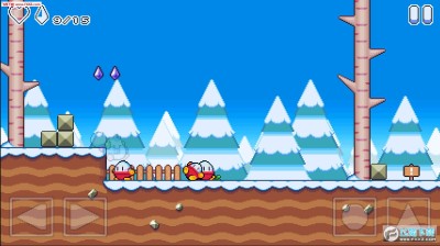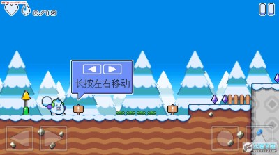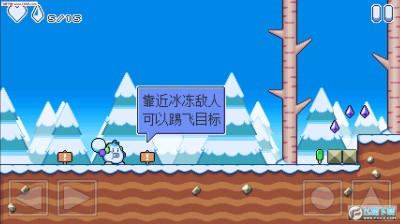 游戏有左右跳和攻击键,遇到小球怪的时候按攻击键丢出雪球把小怪冻住,走过去可对被冻住的小怪进行踢走。
