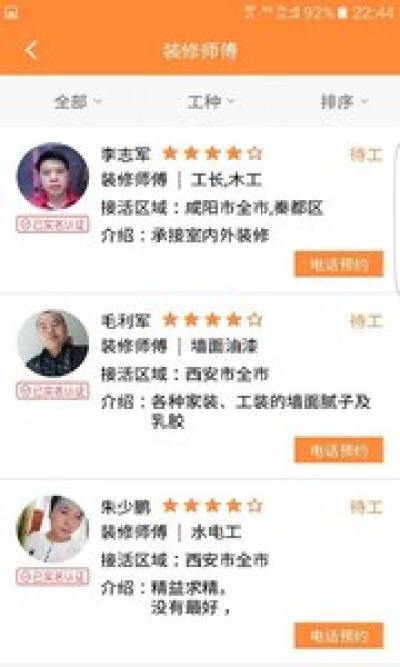 找工人:全面展示定价装修师傅、安装师傅、、任意挑选,一键发布,为您装修房子提供一站式匹配对接。