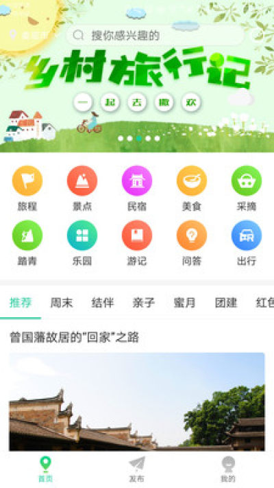 1、全新的旅游服务平台,乡村旅行之路从这里开始,轻松踏青行走;