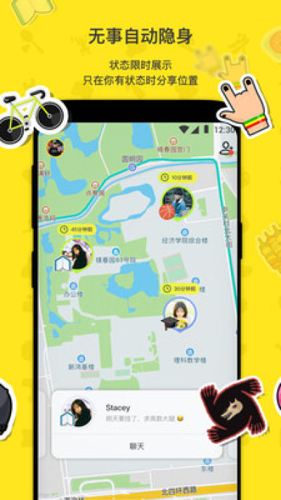 ·从数百种emoji中选择代表自己当前状态的图样,选择在几小时内让朋友在地图上看到自己的位置和Sup!状态