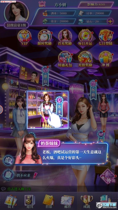 酒吧情缘手游是飞翔下载为玩家们推荐的款手机模拟经营网游。进入游戏世界中玩家们将要通过自己不断经营和挑战自己的能力。游戏趣味的玩法精美的游戏人设很是好玩,喜欢游戏的话那就速速下载吧