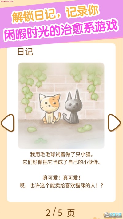 这是一款治愈系的放置休闲小游戏,画风激萌,玩法也是超级简单。通过摸摸猫收集毛毛球,而且数量很多,猫猫自己挠痒痒舔毛也会掉出猫毛,感觉好可爱。收集到的毛毛球还可以制作各种可爱激萌的小玩意儿。制作新的小玩意后可以解锁日记,游戏也细心的帮我们记录了和猫咪在一起的时光。