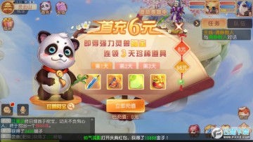 首次充值任意金额即可获得珍稀灵兽阿宝、青青子衿冒泡框、橙色装备、金子*15000。