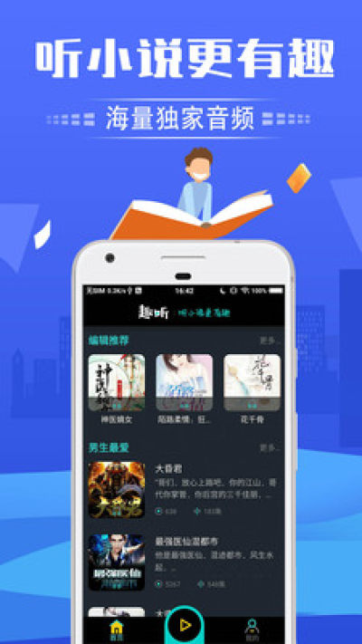 无需付费免费听书,海量资源网络热门免费有声小说,专业播音倾情演绎,海量优质有声读物任你点播!
