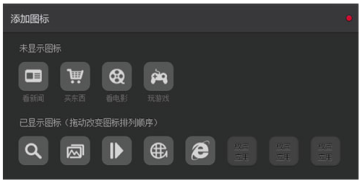 按钮,呼出图标添加界面(拖动图标进行添加;拖动图标的排列进行图标排序)。如图