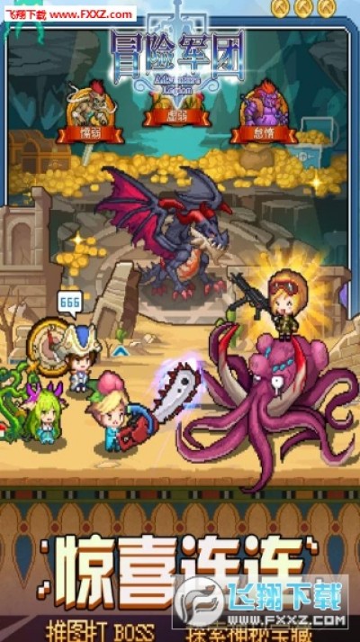 《冒险军团》作为一款放置类手游,玩家不需要耗费大量时间操作游戏,只需达到战力要求便可进入新关卡进行冒险,下线期间依旧享受经验和金钱收益。在重度游戏大量消耗玩家精力的今天,如此有趣好玩的游戏是玩家闲时娱乐的绝佳选择。