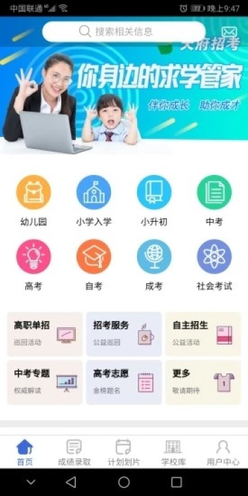 1.为中考、高考、自学考试、成人高考、教育类社会考试等各类考生提供招生与考试服务