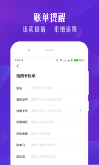 1.账单提醒:还款日、还款金额智能提醒,预防逾期影响信用;