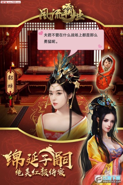 《风流霸业》是一款以三国世界观为背景 ,集国战玩法、策略回合、卡牌武将养成于一身的卡牌游戏。 近百名史诗武将震撼登场,自由个性养成,组建百变阵容,体验丰富有挑战的PVE玩法,让三国历史战役在你的指尖生动重现。游戏倡导养肝护肝,放置挂机,绿色游戏!