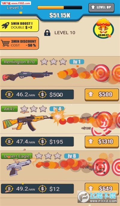 3、海量枪支等着你进行解锁,让靶子们化作你身上的每一分钱。