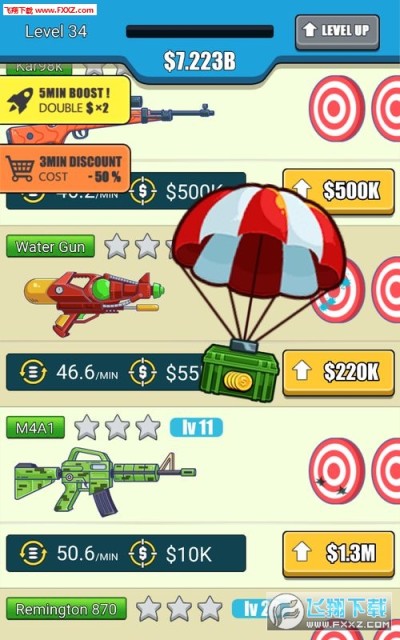 1、非常经典的一种放置游戏,玩家能够控制枪支进行射击,击碎靶子从而获得你的第一桶金。