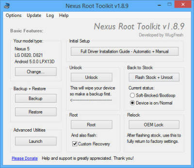 Nexus 系列手机及平板产品的解锁、反解锁、ROOT等功能的实现非 Nexus root toolkit 莫属,它是Nexus系列产品的专属软件。