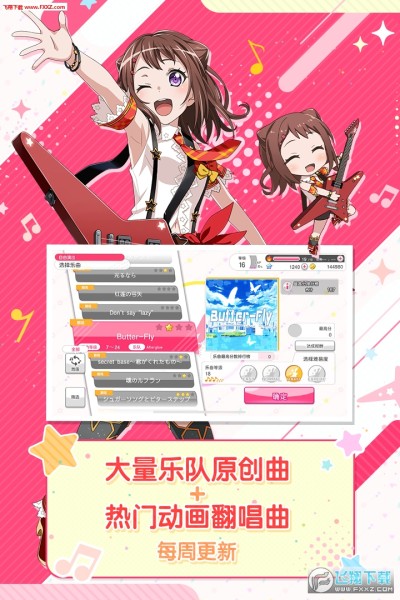 1、精美二次元风格的游戏画风,感受音乐美少女的演奏表演;