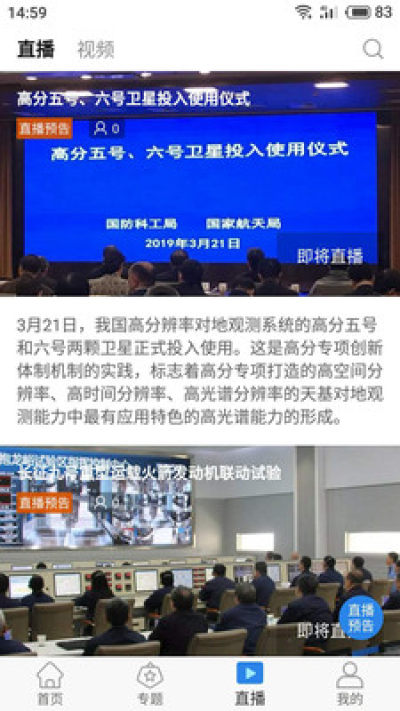 直播:提供航天重大发射任务、航天专家访谈直播,让你与航天大咖面对面。