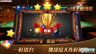 《台球王者传奇》是一款休闲的台球闯关游戏。真实的物理,给你最真实的线上台球体验!