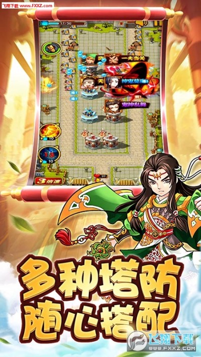 《开心塔防》是一款以三国为背景的塔防玩法手游,游戏集卡牌收集,极致养成,策略战斗,社交互动等众多趣味玩法于一体,以塔防的方式,让玩家体验到三国时代攻城战的壮烈,战争的热血,还原三国时代大争之世的恢弘气势。