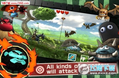 最开始是教学关卡,开始游戏之后可以发现上有一个武士在骑马,屏幕右下是几个图案,这是主动技能,屏幕左下是暂停按钮,屏幕右上是本关所得金币,而屏幕正中间上方的三颗心则是我们的血量。后面有的地方出现大量的靶心,这时候我们的射速无法满足我们全部击杀的要求,所以点击右下角最里面的鹰按钮,即可施展全屏伤害技能。