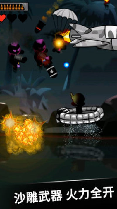 火柴人是一款横版过关类的动作游戏,在这款游戏里面,游戏内玩家扮演一个火柴人角色在河道里开着飞艇与其他玩家战斗并战胜其他玩家获得胜利,游戏结合丰富的地图设计及大量的武器制造飞艇升级,体验着愉快的射击体验和乐趣。配音真实非常有趣,除了道具升级系统之外,每个关卡战绩都是累计的。快来下载解锁各种豪华飞艇,享受紧张刺激射击大战吧。