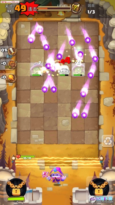 在关卡中,还有各种不同特性的怪物,例如盾牌怪会反弹正面撞到它的法球且不受伤害,再例如骑兵怪可以在三格内就能对你造成伤害,还有投枪怪可以直接对你造成远程伤害,玩家需要小心行事哦!