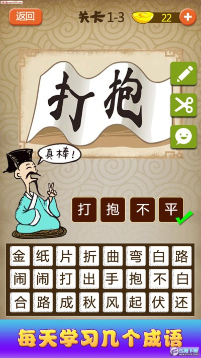 猜成语达人手游是一款休闲益智的游戏,极富有中国特色文化,玩家们可以通过这个游戏,学习到超多的成语,体验中国文化的特色,而且还考验玩家对成语的掌握,还可以和朋友pk,感兴趣的玩家,下载猜成语达人手游体验吧。