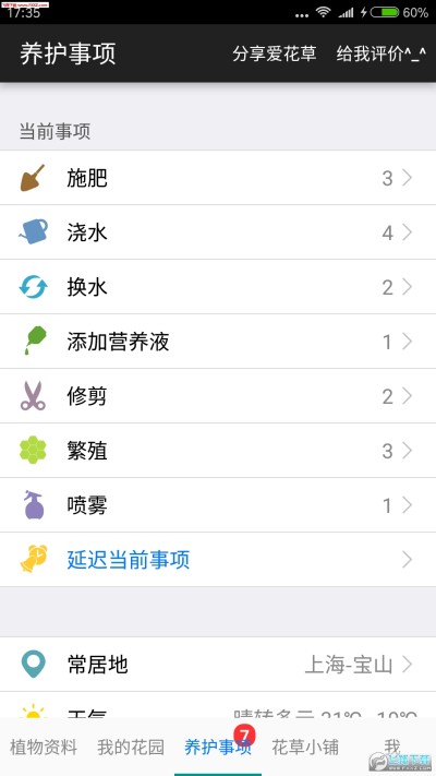 “筛选了一堆app,这个最周到,而且种类很全,能根据定位气候和品种来提醒浇水和施肥,也很适合新手用,赞!”by她的猫