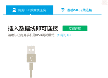 首先请您插入数据线,并确认已经打开手机USB调试模式