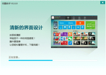 使用优酷助手,通过 USB 数据线以及 WI-FI 无线连接后,可以简单快速的管理手机,可以直接把优酷上的精彩视频下载到手机上,也可以把平台上有大量丰富的应用资源安装到手机上,支持手机与本地的数据传输,通过多屏投放功能,可以体验多屏化播放。