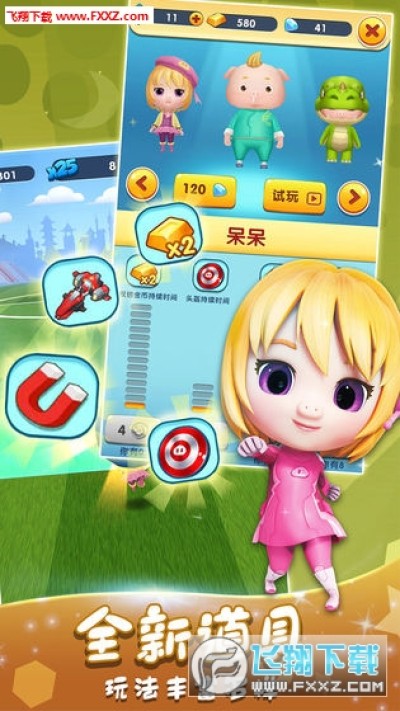 玩家在游戏中有多种道具可以使用,如飞机,安全帽,磁铁等,可以协助角色可以奔跑更远的距离。