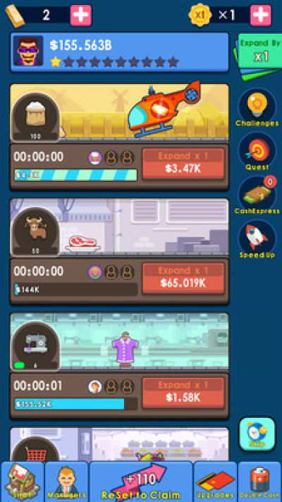 钞票大亨是一个充满机会和挑戰的手游! 欢迎光临流动资产。在这一游戏里面,你惟一必须超过的目的也是变成世界最颇具的人。 最先,取出你的创业资金,从肉制品售销开使,學習怎样一步步积累资金。 随后,注资大量的新兴行业,聘请主管来为了你管理公司。 你接着要做的是真实的挑戰!渐渐地提升你的个股有限责任公司。