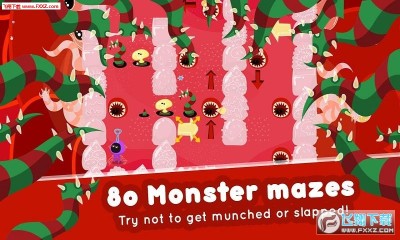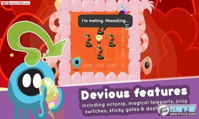 玩家能够控制的只有地上的黄色箭头,蓝色章鱼会按照预定的轨迹行走,遇到箭头后会改变方向。在游戏过程中,如何布置箭头并利用好成了游戏的核心,也是通关的要诀。沿途在有吞食生物的巨口,还有长满尖刺的触手,整个世界都是满满的触手。
