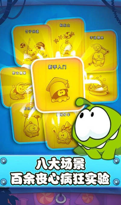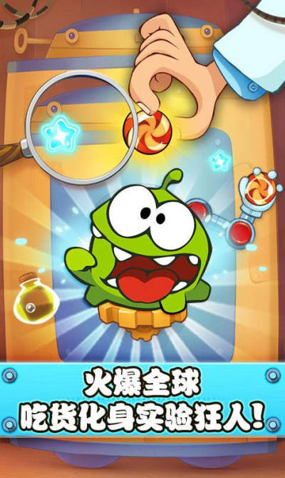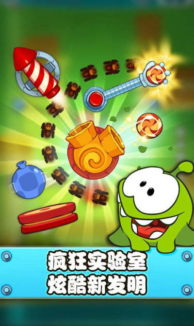 割绳子实验室版是经典益智游戏割绳子的衍生版本,该作中玩家依然可以操纵小吃货Om Nom去吃它最心爱的糖果。小吃货Om Nom为了自己最心爱的糖,亲自充当实验室里的小白鼠,玩家可以在该作中看到不少奇妙的发明。