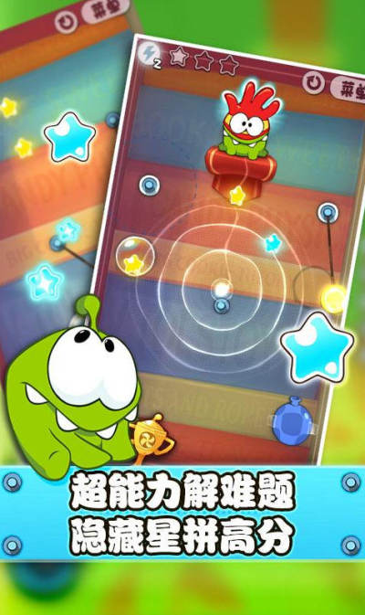 通过自己的智慧,把连接糖球的绳子切断然后使糖球能到小怪物的嘴里。每一关绳子的连接方法都是不同的,所以,要看你的智慧和敏锐的观察能力,否则小怪物吃不到糖球会不高兴的。游戏的操作很简单,通过把绳子切断让糖球掉进小怪物的嘴里,没有难度,上手很容易。