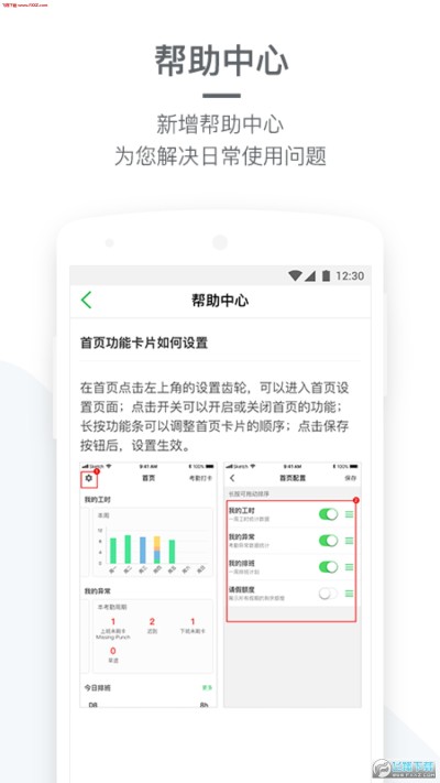 4.迟到、早退、漏打卡等出勤异常实时推送、快速申诉,提前解决问题