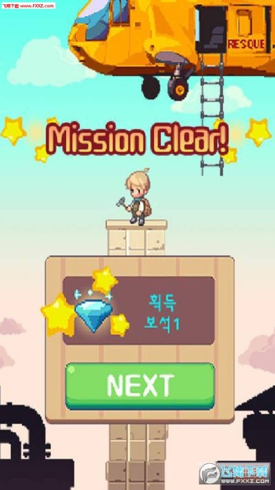 这是一款像素风格的趣味手游,游戏采用竖屏模式,玩家需要快点筑塔去高处,不然就会被水淹没,直到高塔的高度上升到直升机的位置,乘坐直升机逃跑吧。