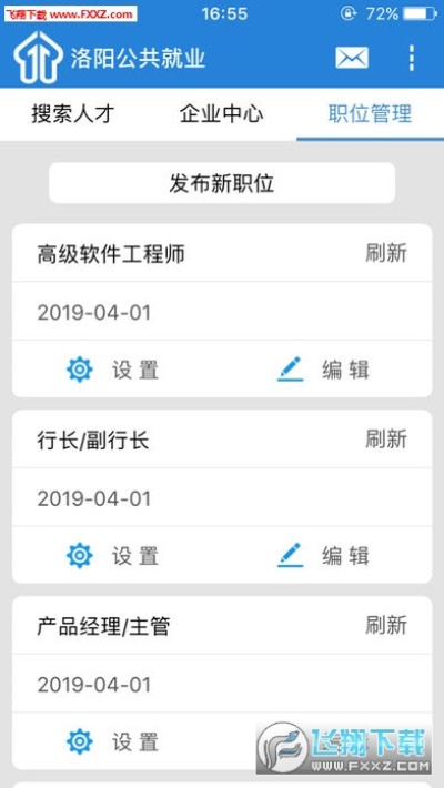 洛阳就业网app企业版app是由洛阳市人力资源和社会保障局给企业提供招聘人才的一个方法,这款洛阳就业网企业版app可以在线发布职位,搜索人才,也能在在线查看求职者的简历发出面试邀请等等,快来下载吧!