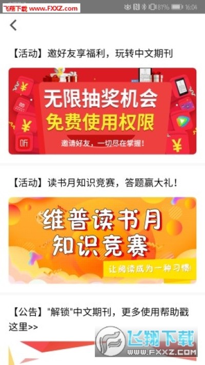 4、公告列表页:期刊活动页、考试库活动页、上线公告;