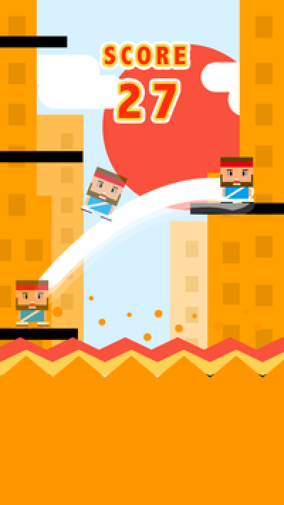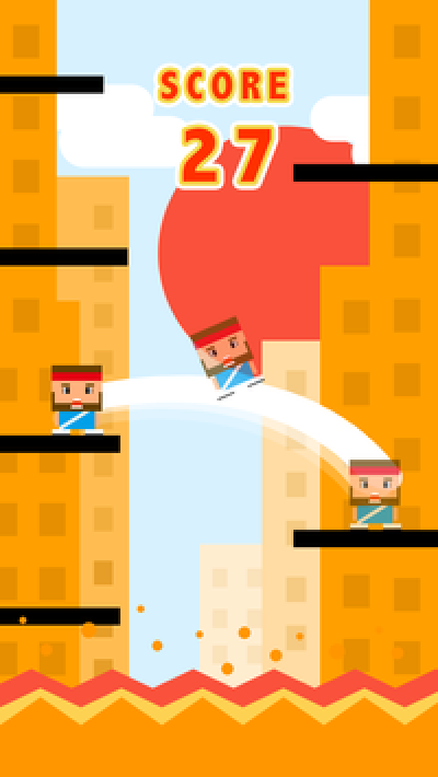 在游戏中你要控制主角不断跳跃,准确的落在各种平台之上,如果落地,等待你的就是岩浆的灼烧!不断刷新自己的游戏记录,你可以在游戏中得到多少分呢?考验你的时候到了,完成游戏中的考验,快来开始你的向上之旅。