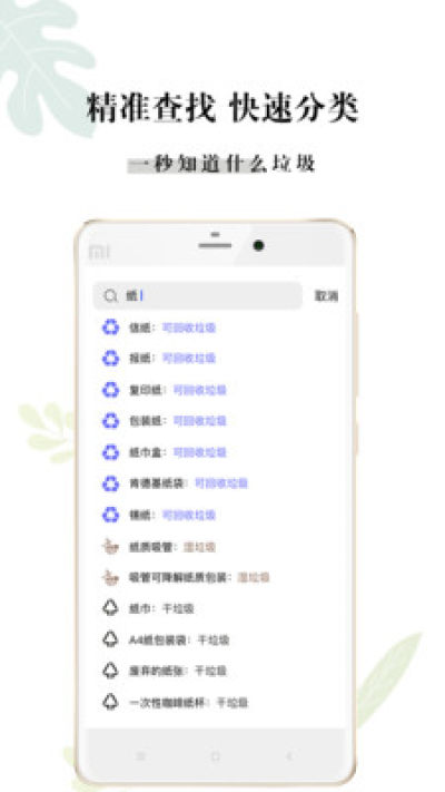 输入垃圾名称或者关键词,快速知道垃圾分类