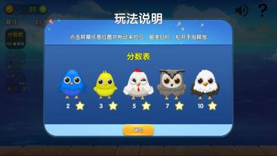 使用不同箭支射击可爱的鸟