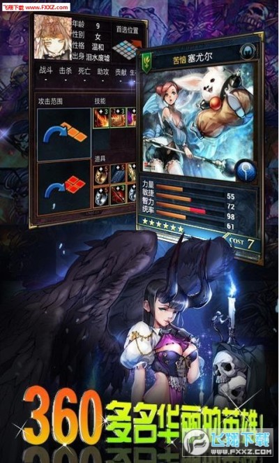 1、游戏采用3D动漫风格画面,玩家可以招募各种已死去的人物,每个人物都会有自己不同的技能。
