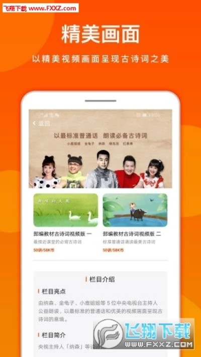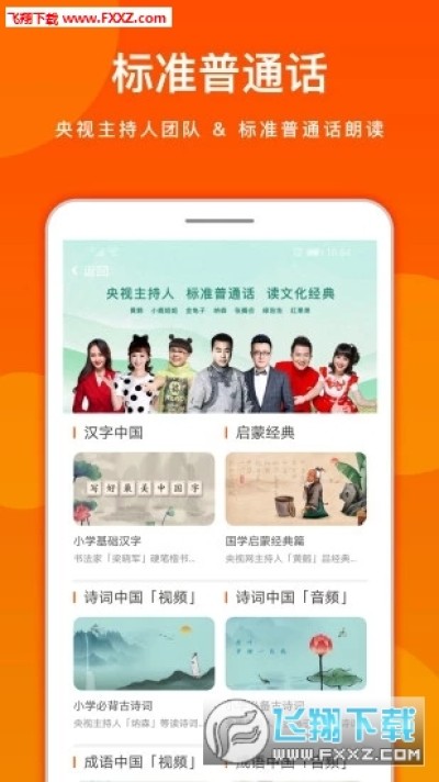 学习标准普通话——邀请中国儿童素质教育形象大使、央视著名主持人张腾岳、纳森、金龟子、小鹿姐姐、红果果、绿泡泡、黄鹤以标准的普通话公益诵读诗词、成语、启蒙经典篇等课程,让孩子在学习文化知识的同时,学好普通话。