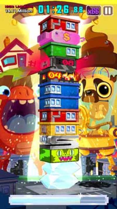 《超级怪兽吃了我的公寓 Super Monsters Ate My Condo!》是一款可爱又劲爆,超炫又有趣的叠楼消除游戏,而在这个基础上,添加的幽默元素和新颖玩法让游戏更加亮丽起来!玩家在叠放楼层的同时,需要应付旁边那些可爱却又对大楼虎视眈眈的怪兽。