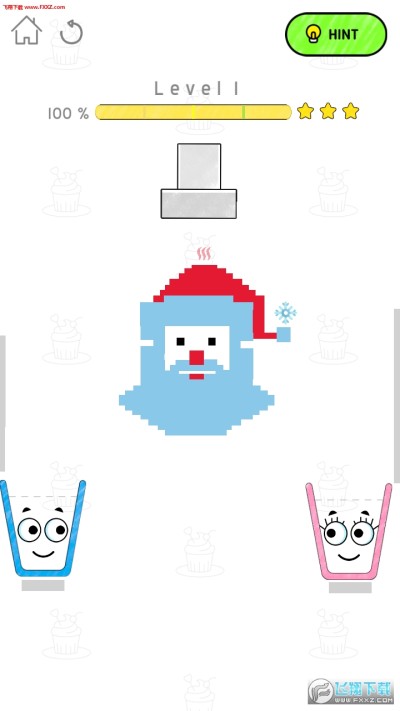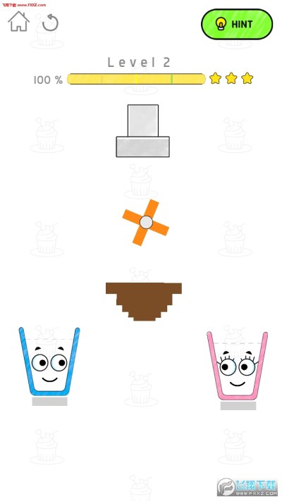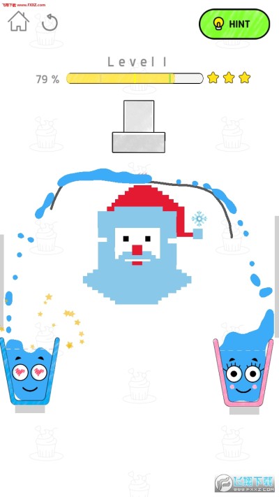 像往常一样,你必须用铅笔画一条线或一个形状来改变水流。仔细考虑这两个玻璃杯的位置,并尽量合乎逻辑。你必须把两个杯子都装满,越过方格线,才能用三颗星来完成这个关卡!
