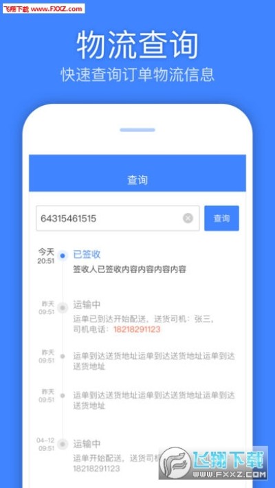 -物流跟踪:实时查询物流订单,一键分享跟踪信息。