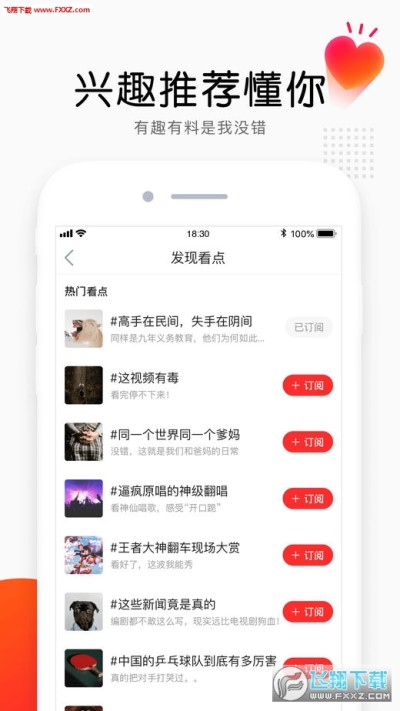 -一键订阅感兴趣的看点,制作你的专属内容清单。